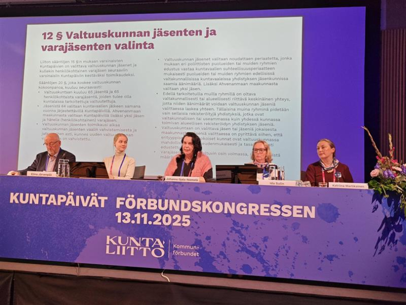 Förbundsdelegationen konstituerar sig 4.12. Då väljs förbundsdelegationens presidium samt Kommunförbundets styrelse med presidium.