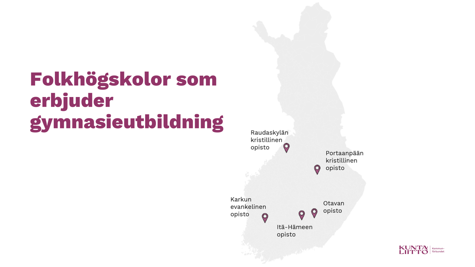 I detta blogginlägg granskas folkhögskolegymnasierna, dvs. de folkhögskolor, vars huvudman har fått tillstånd att ordna gymnasieutbildning i internatform. Trots att också Finlands Adventkyrka i enlighet med sitt anordnartillstånd har rätt att ordna gymnasieutbildning delvis i internatform har samskolan Suomen kristillinen yhteiskoulu, som Adventkyrkan driver, inte tagits med bland dessa folkhögskolegymnasier.