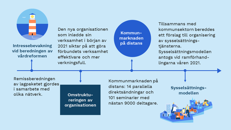 År 2020 var på många sätt både exceptionellt och historiskt för Kommunförbundet. Vi tog flera stora steg framåt tack vare omstruktureringen av organisationen och de förändringar som coronakrisen medförde.