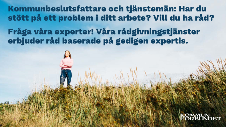Du som är beslutsfattare eller aktör i kommunsektorn: Stötte du på ett problem i arbetet? Behöver du råd? Fråga våra sakkunniga! Kommunförbundets rådgivningstjänst erbjuder råd som bygger på gedigen kompetens.